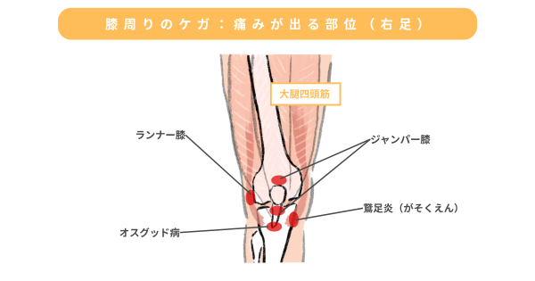 ジャンプやランニングを繰り返すスポーツでは、慢性的に起こる障害のリスクが高まります。特に、膝には大きな負荷がかかるため、ジャンプやランニングでは膝周りのケガが起こりやすくなります。今回はジャンプやランニングで起こりがちな膝周りのケガについて解説します。